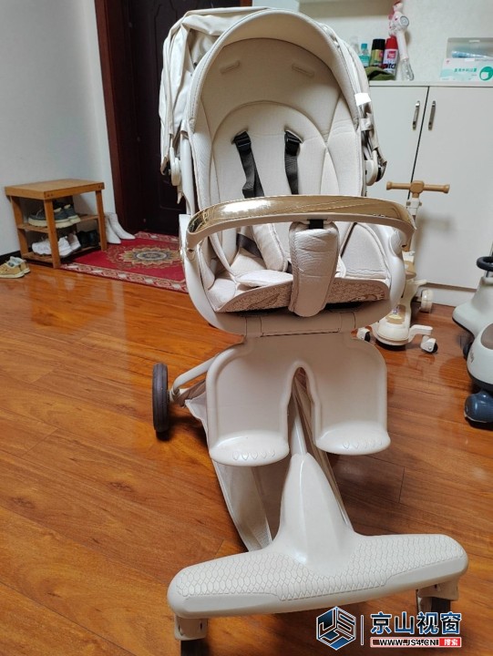 宝宝好V9婴儿推车,奶油色,成色还可以,配件齐全(遮阳棚、安全带、座椅绑...